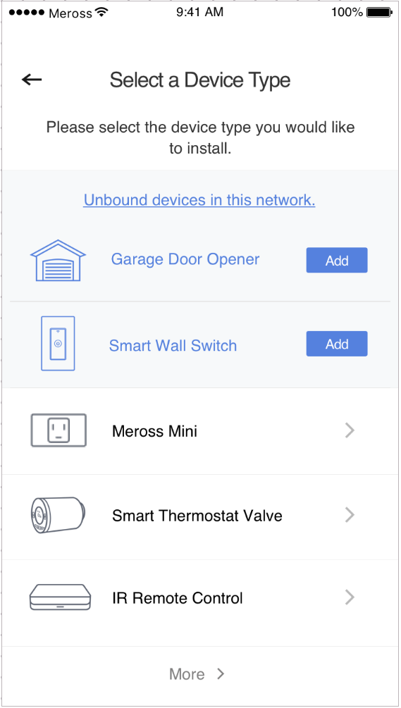 Install the Meross app on your iPhone. After setting up the HomeKit device with your Apple Home app, connect your iPhone to the same home Wi-Fi as your HomeKit device, and launch your Meross app, tap "+" on the top right. It will help you find devices under the same Wi-Fi network. Just tap "Add" and you'll be able to manage it in the Meross app. Then link your Meross account to Amazon Alexa or Google Assistant.